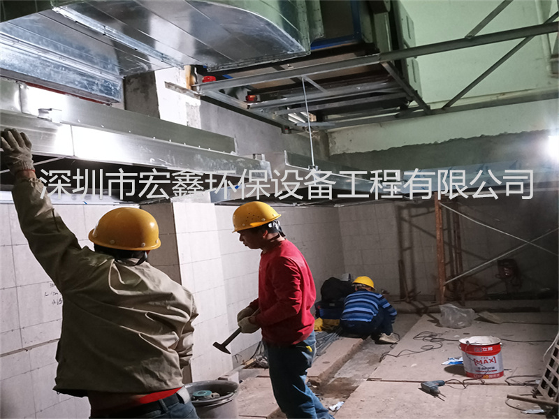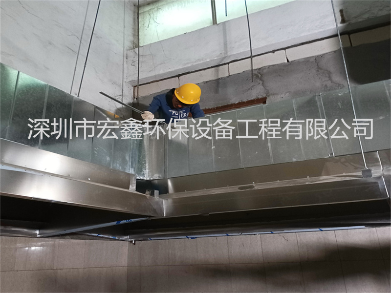 深圳市世杰餐飲公司寶安區石巖塘頭工業區食堂廚房排煙管道安裝工程案例
